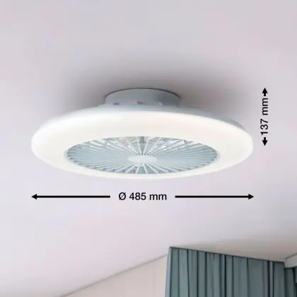 Beschrijving Brilliant Salerno Plafondventilator Kunststof Metaal Wit 36W 4700lm - 830-865 CCT+RGB | 485mm - Afstandsbediening Dimbaar