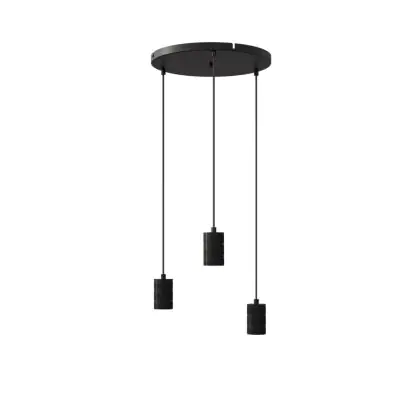 Calex Retro Pendelarmatuur Cordset Rond Metaal Zwart |incl. kabel 2 Meter - Geschikt voor 3xE27