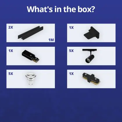 | Fabrikantnaam | Complete Straight 2-meter 1-Phase Track Set Black incl. 5x Spot fixture + GU10 2700K 3W Dim – 2x 1 M | |