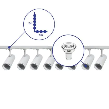 | Fabrikantnaam | Complete L shaped 1-Phase Track Set White incl. 8x Spot fixture + GU10 2700K 3W Dim – 1 x 2 meter i | |