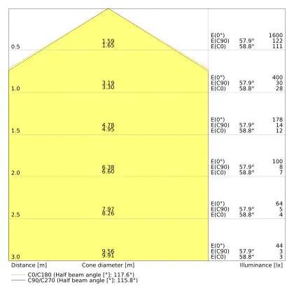 De kleurcode is een combinatie van de kleurweergave (CRI) en lichtkleur (Kelvin). Het eerste getal is de kleurweergave (1 = zeer slechte kleurweergave, 9 = maximale kleurechtheid). Het tweede en derde cijfer betreft de lichtkleur. Een lamp met kleurcode 830 heeft bijvoorbeeld een goede kleurweergave en straalt een warm wit licht uit (3000K), waar een lamp met de kleurcode 940 een uitstekende CRI heeft en een koel wit licht (4000K) uitstraalt. |
