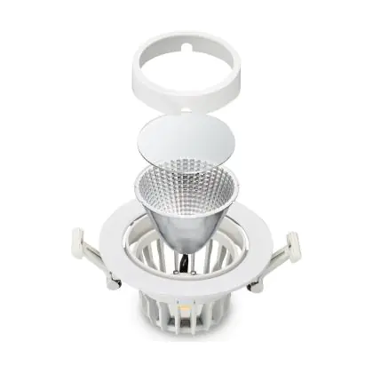 De lichtopbrengst en de gradenbundel spelen een grote rol. Zo geeft de lichtopbrengst van 2800 Lumen in combinatie met de 24° stralingshoek deze inbouwspot een specifieke toepassing. Kort samengevat is een lichtintensiteit van maximaal 400 Lumen ideaal voor accentverlichting, terwijl hogere waardes goed gebruikt kunnen worden als basisverlichting. Over het algemeen geldt: hoe breder de gradenbundel, hoe geschikter deze is door basisverlichting. Dit komt doordat het licht over een groter oppervlak wordt verspreid. Smallere gradenbundels (tot 40°) kunnen echter bij hoge plafonds ook goed tot hun recht komen als algemene verlichting.