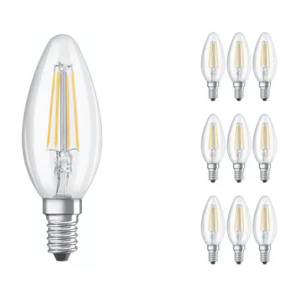 Beschrijving Voordeelpak 10x Ledvance CLASSIC LED E14 Kaars Filament Helder 4W 470lm - 827 Zeer Warm Wit | Vervangt 40W